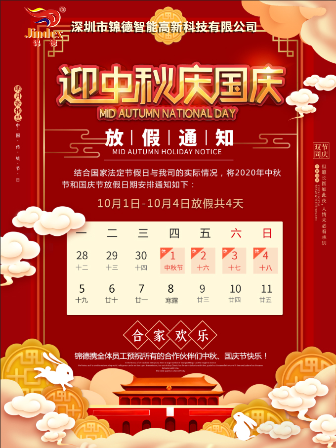 錦德2020年中秋國慶放假通知