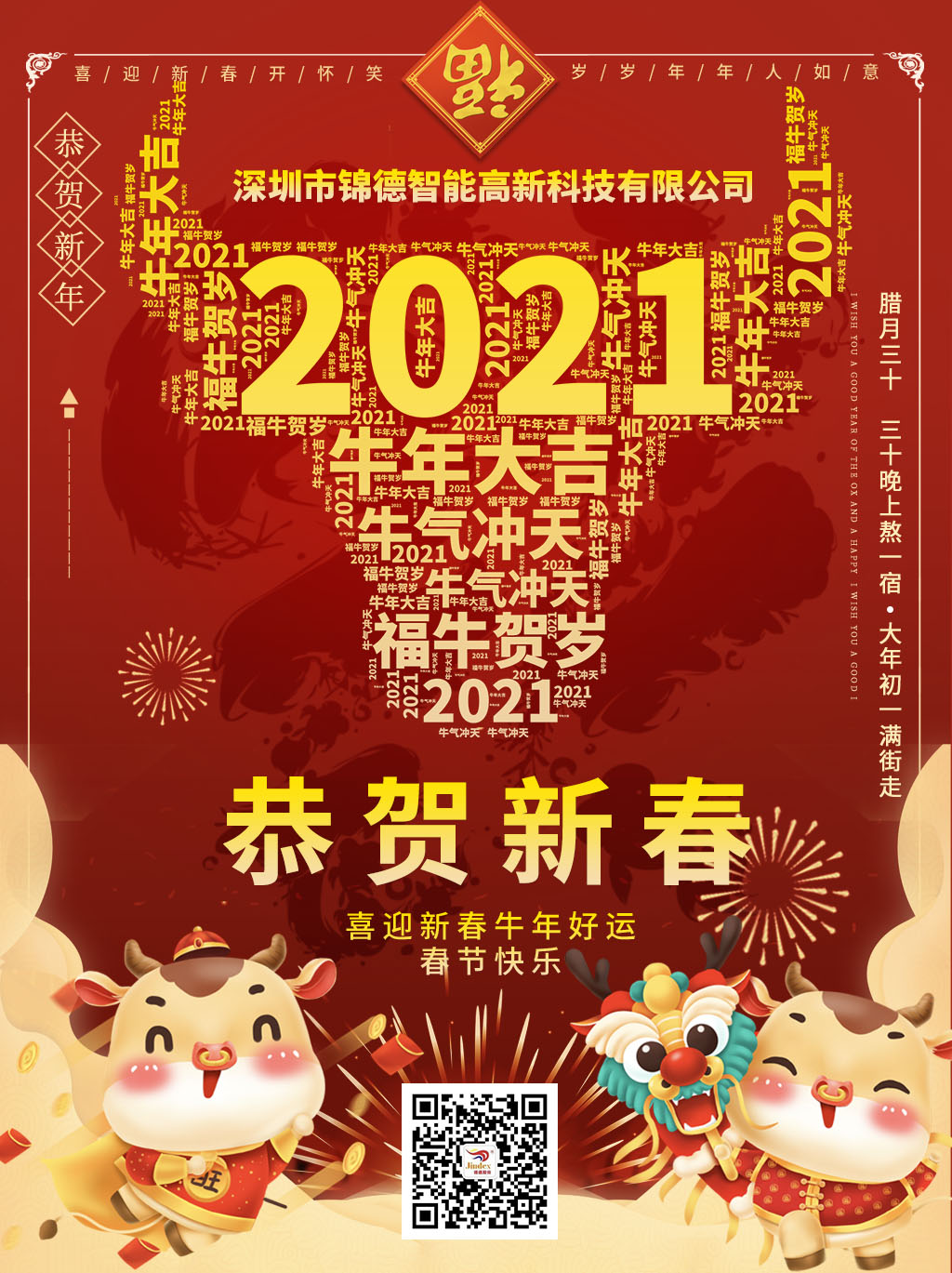 2020年是不平凡的一年,但錦德收獲滿滿,我們即將揮別鼠年迎來牛年,在此辭舊迎新,迎接嶄新的2021之際,我謹代表錦德全體同仁向始終信賴、支持錦德發展的廣大用戶,以及社會各界朋友表示衷心的感謝,恭祝大家闔家團圓,財源廣進!