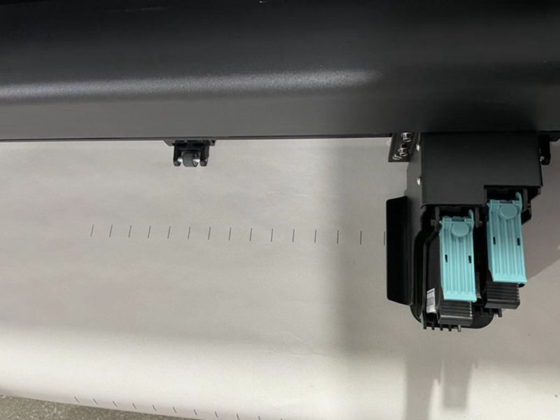 對調兩個墨盒的位置,檢查是否同一個墨盒的位置不出墨,如果是同一個位置不出墨則可能是側板/背板/短排線問題,如果不是同一個位置不出墨則更換新墨盒